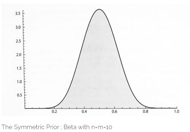 The Symmetric Prior : Beta Distribution with n = m = 10,