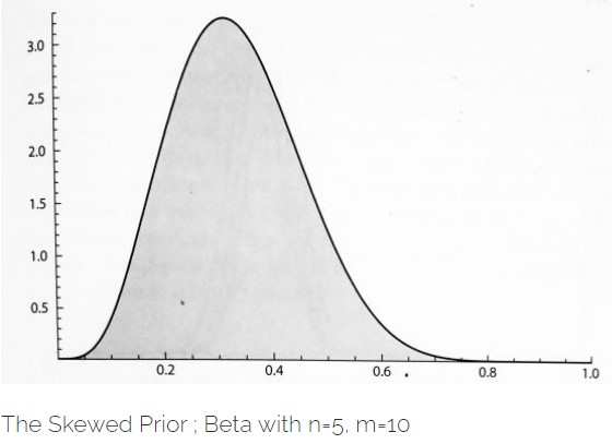The distribution we basically considered in the above solution could be generalized by Beta distribution, whose shapes are governed by the parameters of it that are often names as n and m. The density of beta looks like,
